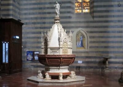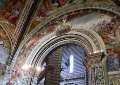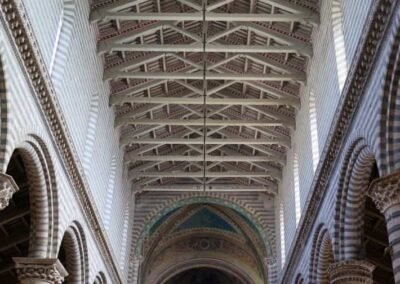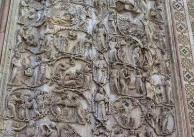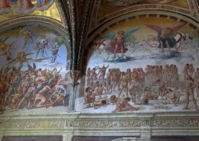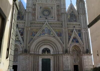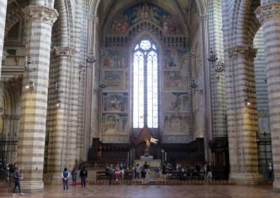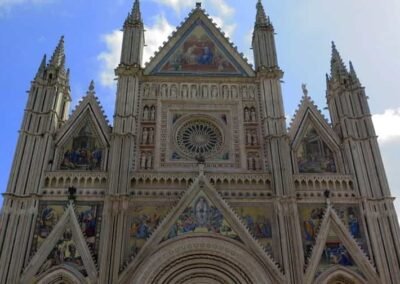 The most iconic landmark in Orvieto is undoubtedly its magnificent cathedral, the Duomo di Orvieto. This stunning Gothic cathedral, begun in 1290, is a masterpiece of medieval architecture and art. Its striking façade, adorned with intricate mosaics, sculptures, and a large rose window, is considered one of the greatest achievements of Italian Gothic architecture. Inside, the cathedral is equally impressive, with frescoes by Luca Signorelli and Fra Angelico that depict scenes of the Last Judgment, considered some of the finest examples of Renaissance art. Another architectural gem is the Palazzo del Popolo, a grand medieval palace that once served as the seat of the city’s government. Today, it hosts cultural events and exhibitions, continuing its role as a centre of civic life. The Torre del Moro, a tall clock tower in the heart of Orvieto, offers panoramic views of the town and the surrounding landscape, providing a perfect vantage point to appreciate the town’s unique setting. One of Orvieto’s most fascinating features is its underground world. Beneath the town lies a vast network of caves, tunnels, and cisterns, carved out of the soft volcanic rock over centuries. Known as Orvieto Sotterranea, this subterranean labyrinth was used by the Etruscans for various purposes, including as a refuge and for water management. Today, guided tours offer visitors the chance to explore these ancient passages and learn about the town’s ingenious use of its natural resources.