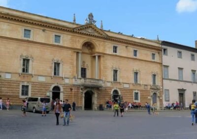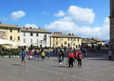 Piazza San Giovanni in Orvieto is a quietly charming square in the historic core of the city, cantered around the Church of San Giovanni Evangelista. The square occupies a spot rich with layered history, the church itself stands on what may have been earlier Roman or even Etruscan religious foundations. Adjacent to the church is the Palazzo del Gusto, whose subterranean levels house the Enoteca Regionale dell’Umbria, cellars carved into the volcanic tuff rock that hold centuries of winemaking tradition. Throughout the year Piazza San Giovanni hosts gastronomic events like Orvieto con Gusto and Orvieto Food Festival, making it not merely a place of worship or history, but also of community gathering and culinary celebration. Architecturally and atmospherically, the square is an evocative blend of spiritual significance, rustic Umbrian charm, and cultural vitality, a small but unforgettable hinge between Orvieto’s furrowed past and its lively present.