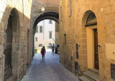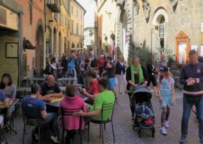 Orvieto is also known for its vibrant cultural life and its culinary traditions. The city hosts numerous festivals and events throughout the year, celebrating everything from medieval history to local food and wine. The Umbria Jazz Winter Festival, held every December, attracts music lovers from around the world, while the Palio dei Quartieri, a medieval re-enactment, brings the town’s history to life in a colourful display of pageantry and competition. The local cuisine is another highlight of Orvieto, with its roots in Umbrian culinary traditions. The city is famous for its white wine, Orvieto Classico, a crisp, refreshing wine that pairs perfectly with the region’s hearty dishes, such as wild boar, truffles, and handmade pasta. Orvieto is a city that seamlessly blends its rich history with vibrant modern life, offering visitors a unique experience that is both culturally enriching and visually stunning. Whether you’re exploring its magnificent cathedral, wandering through its medieval streets, or discovering its underground secrets, Orvieto provides a captivating glimpse into Italy’s past while embracing the present. This hilltop city, with its breath-taking views and timeless charm, is truly one of Italy’s hidden gems, inviting travellers to discover its many layers of history, art, and culture.