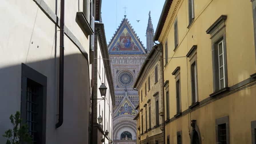 The walk starts in Parcheggio Percorso Meccanizzato – take the lift or escalators to Piazza de’ Ranieri – Via Ripa Serancia – Vicolo Ripa Medici – Via Giuseppe Garibaldi – Via Alberici – Via Ghibellina – Via Ippolito Scalza – Piazza Febei – Via Lorenzo Maitani – Via Pedota – Via Lorenzo Maitani – Piazza del Duomo – Duomo di Orvieto, Piazza del Duomo – Via Soliana – Via Cesare Nebbia – Corso Cavour – Piazza Sant’Andrea
