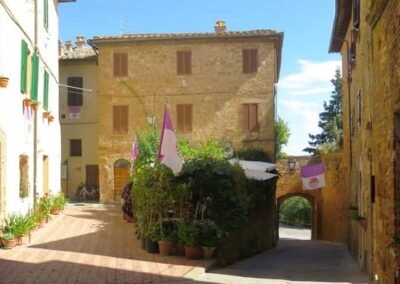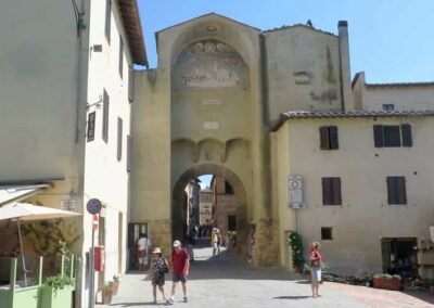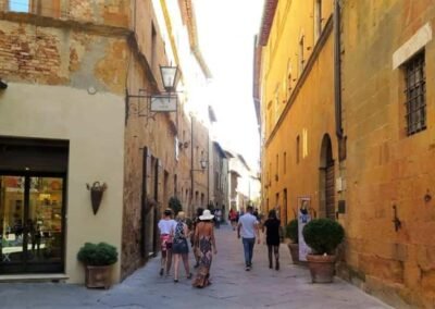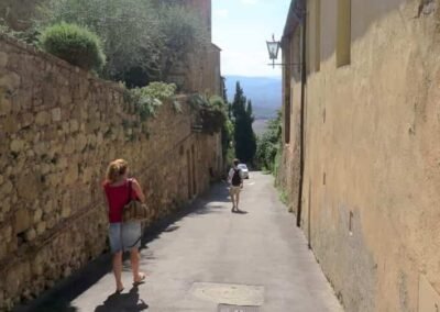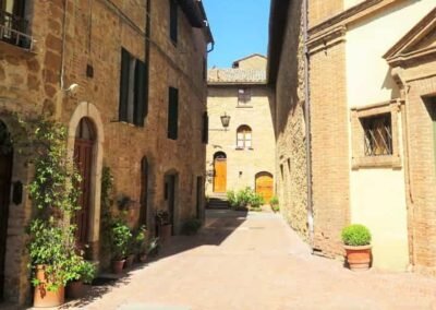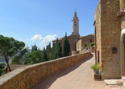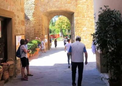 The walk starts in Piazza Dante Alighieri – Porta al Murello chiamata anche Porta al Prato – Piazza Martiri della Liberta – Corso il Rossellino – Piazza Pio II – Vicolo Fortuna – Via del Casello – Walk back along Vicolo Fortuna to Corso il Rossellino – Vic. Cieco – Via del Casello – Walk back to Corso il Rossellino – Via San Carlo – Via delle Case Nuove – Via dell’Apparita