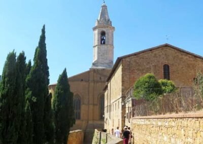 The Concattedrale di Santa Maria Assunta, commonly known as Pienza Cathedral, stands as the spiritual and architectural heart of Pienza, Tuscany. Commissioned by Pope Pius II in the mid-15th century, the cathedral was designed by the Florentine architect Bernardo Rossellino, who transformed the town into a model Renaissance city. The church’s façade, inspired by classical harmony and simplicity, contrasts beautifully with the surrounding medieval structures, while its interior reflects both Gothic and Renaissance influences. Tall columns and ample windows create an atmosphere of light and space, emphasizing the humanist ideals of balance and clarity. Inside, visitors can admire important artworks, including altarpieces by prominent Sienese painters of the period. As part of Pienza’s UNESCO-listed historic center, the Concattedrale di Santa Maria Assunta is not only a place of worship but also a symbol of the cultural vision of Pope Pius II, who sought to unite faith, art, and humanist philosophy in his beloved hometown.