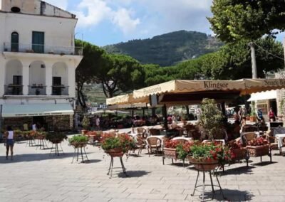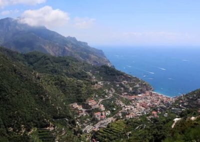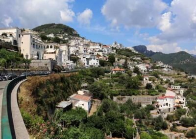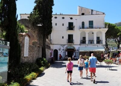 Ravello’s most famous landmarks are its historic villas, which showcase a blend of Moorish, medieval, and Renaissance influences. Villa Rufolo, dating back to the 13th century, features magnificent gardens that overlook the sea, creating one of the most picturesque views on the Amalfi Coast. The gardens are filled with vibrant flowers, towering cypress trees, and ancient ruins, making them a perfect place to wander and soak in the beauty of Ravello. Equally stunning is Villa Cimbrone, another masterpiece of architecture and landscape design. Its famous “Terrace of Infinity” offers one of the most breath-taking panoramas in all of Italy, with statues standing against the vast blue expanse of the sea and sky. Walking through its lush gardens, visitors can admire classical sculptures, hidden pathways, and beautifully manicured flower beds. Ravello’s serene atmosphere, elegant charm, and artistic legacy make it a unique gem on the Amalfi Coast. Whether exploring its historic villas, attending a world-class concert, or simply enjoying the stunning views, visitors will find that Ravello offers an experience unlike any other—a perfect blend of culture, history, and natural beauty that continues to inspire and enchant.