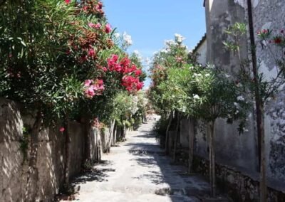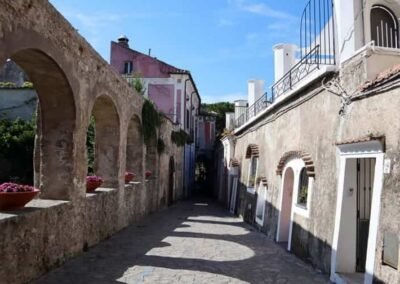 The villa itself is an architectural treasure, blending Gothic, Moorish, and Romanesque elements in a way that feels harmonious and timeless. Inside, visitors can find richly decorated rooms, each echoing the styles and tastes of the early 20th century revivalist architecture. The cloisters, arches, and ancient columns throughout the villa create a feeling of history interwoven with art. While much of Villa Cimbrone is now a luxury hotel, its gardens and terraces remain open to the public, allowing everyone a chance to experience its beauty and serenity. Beyond its physical beauty, Villa Cimbrone has a profound cultural and historical legacy. The villa has hosted numerous luminaries over the years, from D.H. Lawrence to Virginia Woolf, who were drawn to the Amalfi Coast’s natural beauty and tranquillity. Today, Villa Cimbrone continues to be a favourite for weddings, photography, and anyone who seeks a picturesque escape from the everyday. Whether visiting for its stunning views, historical significance, or peaceful ambiance, Villa Cimbrone offers a unique glimpse into the romance of the Amalfi Coast. It is a place where the line between natural beauty and artifice blurs, creating an unforgettable experience for all who visit. A trip to Ravello is not complete without exploring this iconic villa and its famed Terrace of Infinity, where the beauty of Italy’s coastline can be appreciated in its full grandeur.
