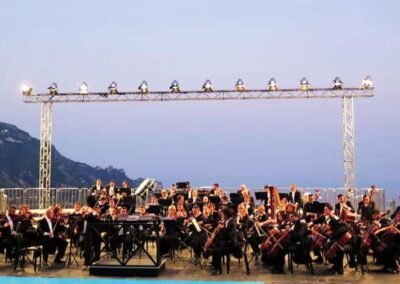Ravello’s origins date back to the 5th century when it was founded as a refuge from barbarian invasions following the fall of the Western Roman Empire. By the 9th century, it had become a prosperous maritime power under the Duchy of Amalfi, known for its wealth and trade connections with the Middle East. The influence of this golden era is still evident in Ravello’s architecture, particularly in its stunning villas and ancient churches. While its prominence declined in later centuries, the town retained its unique charm and historical significance, eventually drawing visitors from around the world. For centuries, Ravello has inspired some of the greatest artists, musicians, and writers. The German composer Richard Wagner found inspiration for his opera Parsifal while visiting Villa Rufolo, whose gardens still echo with the sounds of music today during the annual Ravello Festival. The town has also attracted literary figures such as Virginia Woolf, D.H. Lawrence, and Gore Vidal, who fell in love with its peaceful atmosphere and dramatic coastal scenery. The Ravello Festival, held every summer, celebrates this deep artistic tradition with concerts, dance performances, and theatrical productions in extraordinary settings, including the iconic Villa Rufolo. The festival’s open-air stage, set against the backdrop of the sea, provides an unforgettable experience for visitors and performers alike.