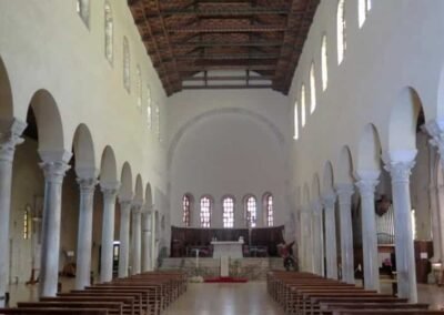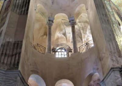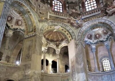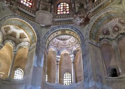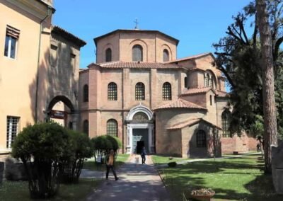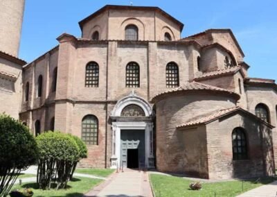The Basilica di San Vitale, located on Via San Vitale in Ravenna, is one of the most important monuments of early Christian Byzantine art in Italy. Built in the 6th century during the Ostrogothic and Byzantine periods, it is renowned for its striking octagonal structure and richly decorated interior. The basilica’s mosaics are among the finest in the world, depicting religious scenes, imperial figures, and intricate geometric patterns with vibrant colors and gold backgrounds. These mosaics, particularly the famous depictions of Emperor Justinian and Empress Theodora, reflect both spiritual devotion and the political authority of the Byzantine Empire. The architectural design of San Vitale, combining Roman engineering with Eastern artistic influences, was highly innovative for its time and inspired later religious architecture throughout Europe. A UNESCO World Heritage site, the Basilica di San Vitale remains a testament to Ravenna’s cultural and historical significance, offering visitors a breathtaking glimpse into early Christian artistry and Byzantine grandeur.