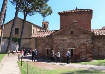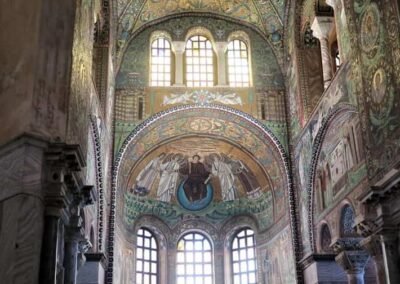 Ravenna, a city rich in history, art, and culture, is one of Italy’s most captivating destinations. Situated in the Emilia-Romagna region, just a short distance from the Adriatic Sea, Ravenna is renowned for its magnificent mosaics and its unique role as a bridge between the Roman and Byzantine worlds. Once the capital of the Western Roman Empire, Ravenna has been shaped by centuries of influence from various rulers and civilizations, leaving behind a wealth of architectural and artistic treasures that are recognized by UNESCO as World Heritage Sites. The city’s importance dates to the early 5th century, when the Roman Emperor Honorius moved the capital of the Western Roman Empire from Milan to Ravenna due to its strategic coastal location. This marked the beginning of Ravenna’s golden age, which continued after the fall of the Western Empire when the city became the capital of the Ostrogothic Kingdom under Theodoric the Great. In 540 AD, Ravenna was conquered by the Byzantine Empire and became the seat of the Exarchate of Ravenna, cementing its status as a centre of Byzantine art and culture in the West. This complex history is reflected in the city’s architecture, where Roman, Gothic, and Byzantine influences coexist harmoniously. The most famous aspect of Ravenna is its incredible mosaics, which are considered some of the finest examples of early Christian and Byzantine art in the world. The city boasts eight UNESCO-listed monuments, each showcasing intricate mosaics that depict biblical scenes, imperial power, and religious symbolism with stunning craftsmanship. The Basilica di San Vitale, built in the 6th century, is perhaps the most iconic of these monuments. Its mosaic-covered walls and ceilings, featuring vivid depictions of Emperor Justinian and Empress Theodora, are awe-inspiring in their detail and colour, transporting visitors back to the splendour of the Byzantine court. Another must-see is the Mausoleum of Galla Placidia, a small but exquisitely decorated structure that houses some of the oldest mosaics in Ravenna. The starry night sky depicted on its ceiling, along with scenes of Christ and the apostles, creates a serene and otherworldly atmosphere. Nearby, the Basilica of Sant’Apollinare Nuovo and the Baptistery of Neon also feature breath-taking mosaics that exemplify the artistic sophistication of early Christian Ravenna.