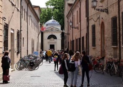 Beyond its mosaics, Ravenna’s history can be explored through other remarkable sites. The Mausoleum of Theodoric, the tomb of the Ostrogothic king, is a unique stone structure built in the early 6th century and reflects the city’s Gothic heritage. The Basilica of Sant’Apollinare in Classe, located just outside the city, is another important religious site, known for its serene countryside setting and richly decorated apse mosaics. Ravenna’s cultural legacy extends to the world of literature as well. The city was the final resting place of Dante Alighieri, the great Italian poet who wrote The Divine Comedy. His tomb, located in a quiet corner of the city, is a pilgrimage site for literary enthusiasts from around the world. Each year, Ravenna celebrates Dante with events and exhibitions that pay tribute to his enduring influence on Italian culture. In addition to its historical and artistic significance, Ravenna offers a vibrant, modern experience for visitors. Its historic centre is filled with charming streets lined with cafes, restaurants, and artisan shops where one can sample local specialties such as piadina, a traditional flatbread, or indulge in the region’s renowned wines. The city’s proximity to the Adriatic coast also makes it an ideal base for exploring nearby beaches or enjoying water-based activities. Ravenna is a city where the past and present blend seamlessly, offering a unique journey through the artistic and cultural evolution of Italy. From its glittering mosaics to its quiet streets, Ravenna is a place where history comes alive, inviting travellers to explore its timeless beauty and rich heritage.