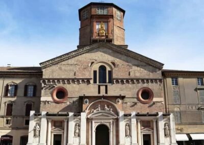The Basilica of San Prospero, located in Piazza di S. Prospero in Reggio Emilia, is a historic and architecturally significant church dedicated to the city’s patron saint. Originally constructed in the 10th century and rebuilt over subsequent centuries, the basilica reflects a blend of Romanesque and Baroque styles, evident in its ornate façade, elegant bell tower, and richly decorated interior. Inside, visitors can admire intricate frescoes, sculpted altars, and religious artworks that celebrate both the history and spiritual life of the region. The basilica has long served as a center for worship, community gatherings, and cultural events, making it an integral part of Reggio Emilia’s social and religious fabric. Its prominent location in the heart of the city allows easy access to nearby historic streets, piazzas, and landmarks. Visiting the Basilica of San Prospero offers insight into Reggio Emilia’s religious heritage, artistic achievements, and enduring devotion to its patron saint.