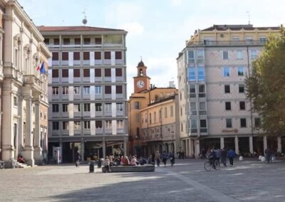 Architecturally, Reggio Emilia reflects its layered history with a mix of medieval, Renaissance, and modern structures. The city’s historic centre is characterized by charming piazzas, narrow streets, and well-preserved buildings, many of which house boutiques, cafés, and restaurants. The Piazza Prampolini, known as the heart of the city, is home to the impressive Reggio Emilia Cathedral and the Palazzo del Comune, offering visitors a glimpse of the city’s artistic and cultural heritage. Nearby, the Basilica della Ghiara, a Baroque masterpiece, stands as one of the city’s most important religious sites. Reggio Emilia is also known for its culinary excellence, with a deep-rooted tradition of producing some of Italy’s finest food products. Located in the heart of the fertile Po Valley, the city is surrounded by rich agricultural land that produces high-quality ingredients central to Italian cuisine. The region is famous for its production of Parmigiano Reggiano cheese, often referred to as the “king of cheeses.” Additionally, the nearby city of Modena is home to the production of traditional balsamic vinegar, a staple in local dishes. Reggio Emilia’s markets, restaurants, and trattorias offer an array of delicious foods, from handmade pasta like tortelli to cured meats like prosciutto. Culturally, the city is a hub for arts and performances. The Teatro Municipale Valli, a grand neoclassical opera house, hosts operas, concerts, and ballet performances, contributing to Reggio Emilia’s reputation as a city of culture. Festivals celebrating music, theatre, and film, along with local traditions like food fairs, create a lively atmosphere throughout the year, making the city a focal point for both residents and visitors. Reggio Emilia is a city that beautifully intertwines its historical roots with a modern, progressive outlook. Known globally for its educational philosophy, it also offers a rich array of cultural, architectural, and culinary experiences, making it a destination that appeals to both the curious traveller and the history enthusiast.