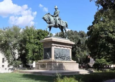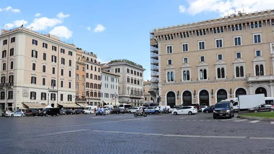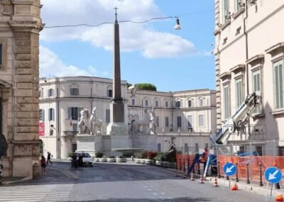 The walk starts in Roma Termini, Piazza dei Cinquecento – Viale Luigi Einaudi – Piazza della Repubblica – Fontana delle Naiadi, Piazza della Repubblica – Piazza della Repubblica – Via Nazionale – Via Napoli – Via Nazionale – Via delle Quattro Fontane – Via Nazionale – Giardino di Sant’Andrea al Quirinale, Via del Quirinale – Monumento celebrativo del “Bicentenario dei Carabinieri”, Via del Quirinale – Via del Quirinale – Statua di Carlo Alberto, Via del Quirinale – Via del Quirinale – Piazza del Quirinale – Via della Consulta – Via Piacenza – Via Milano – Via Nazionale – Via Quattro Novembre – Via Magnanapoli