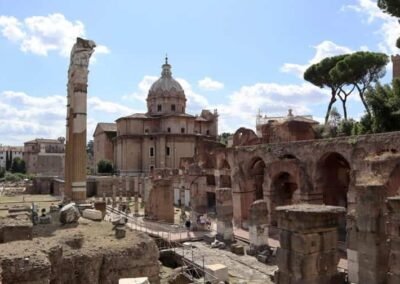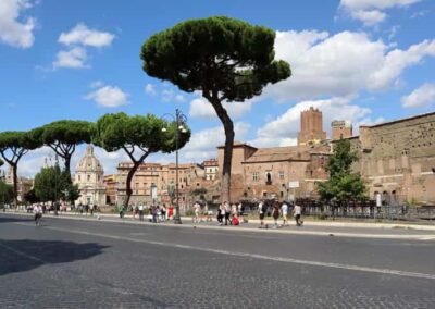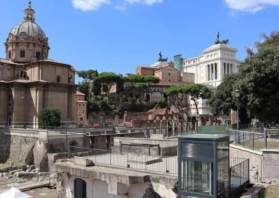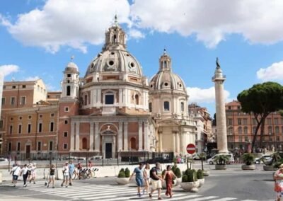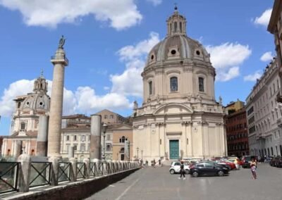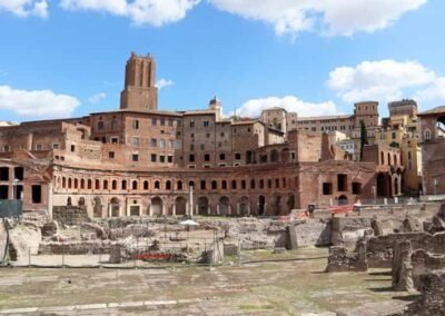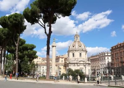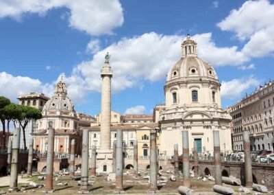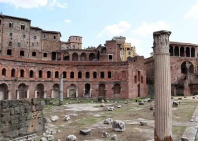 Foro Traiano, or Trajan’s Forum, is one of the most remarkable monuments of ancient Rome, showcasing the grandeur of Emperor Trajan’s reign. Built between 107 and 113 AD under the guidance of the architect Apollodorus of Damascus, it was the largest and most impressive of the Imperial Forums. The complex included vast colonnaded squares, basilicas, libraries, and the famous Trajan’s Column, which still stands today. The column, decorated with a spiralling frieze, narrates the victories of Trajan in the Dacian Wars and remains a masterpiece of Roman art and storytelling. The forum was a political, commercial, and cultural center, reflecting Rome’s power at its height. Adjacent to the forum is Trajan’s Market, an ancient complex of multi-level halls often considered the world’s first shopping mall. Today, visitors can walk among its ruins and imagine the vibrancy of Rome’s imperial past.