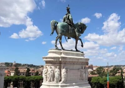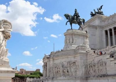 The Monumento Nazionale a Vittorio Emanuele II, also known as the Altare della Patria or “Altar of the Fatherland,” is one of Rome’s most iconic landmarks. Located in Piazza Venezia, it was built between 1885 and 1935 to honour King Victor Emmanuel II, the first monarch of unified Italy. The grand white marble structure, designed by Giuseppe Sacconi, features majestic stairways, sweeping colonnades, and towering statues, symbolizing Italian unity and patriotism. At its centre stands the equestrian statue of Victor Emmanuel II, while the Tomb of the Unknown Soldier, added in 1921, pays tribute to Italy’s fallen soldiers. The monument also houses the Museum of Italian Unification, offering insight into the nation’s history. From its panoramic terraces, visitors enjoy breath-taking views of the Roman Forum, Capitoline Hill, and the city beyond. Both a national symbol and a striking architectural masterpiece, it remains a must-see in Rome.