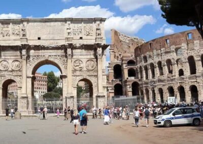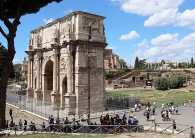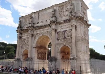 Piazza dell’Arco di Costantino is a historic square in the heart of Rome, dominated by the majestic Arch of Constantine, the largest triumphal arch in the city. Built in 315 AD, it was erected to commemorate Emperor Constantine’s victory over Maxentius at the Battle of the Milvian Bridge. The arch is richly decorated with reliefs and sculptures, many reused from earlier monuments, making it a fascinating blend of Roman art from different eras. The piazza lies between the Colosseum and the Palatine Hill, placing it at the crossroads of some of ancient Rome’s most iconic sites. Over the centuries, the arch became a symbol of imperial triumph and the dawn of Christianity, as Constantine legalized the faith soon after his victory. Today, Piazza dell’Arco di Costantino is a lively meeting point for visitors exploring the Eternal City, offering a striking glimpse into Rome’s glorious past.
