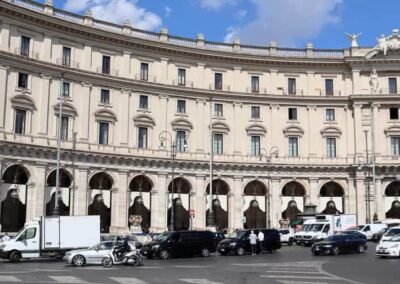 Piazza della Repubblica in Rome is one of the city’s most elegant and historic squares, blending ancient heritage with modern charm. Located near Termini Station, it sits on the site of the Baths of Diocletian, the grand Roman thermal complex dating back to the 3rd century AD. The square itself was redesigned in the late 19th century during Italy’s unification, reflecting the city’s transformation into a modern capital. Its centrepiece is the striking Fountain of the Naiads, created by sculptor Mario Rutelli in 1901, featuring graceful bronze nymphs symbolizing natural forces. Surrounding the piazza are sweeping arcades with cafés, shops, and luxury hotels, including the historic Palazzo Naiadi. Nearby, visitors can admire the Basilica of St. Mary of the Angels and the Martyrs, designed by Michelangelo within the ancient baths. Today, Piazza della Repubblica offers a lively mix of history, culture, and everyday Roman life.