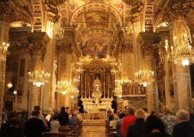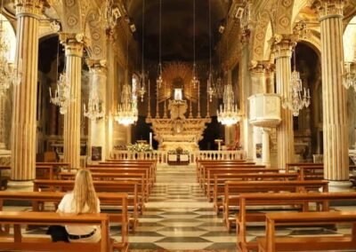 The Santuario di Nostra Signora della Rosa in Santa Margherita Ligure is a cherished place of devotion and history, nestled in the heart of the Ligurian Riviera. Dating back to the 17th century, the sanctuary was built to honor the Virgin Mary, who, according to local tradition, miraculously appeared holding a rose. Over time, it became a spiritual landmark for sailors, fishermen, and townspeople, who turned to the Madonna for protection and blessings. The church’s architecture reflects the Baroque style, with elegant lines, ornate decorations, and a serene interior that invites prayer and reflection. Inside, visitors can admire beautiful frescoes, sacred art, and the revered statue of the Madonna della Rosa. Still today, the sanctuary is not only a place of faith but also a cultural treasure, blending religious tradition with the maritime identity of Santa Margherita Ligure, offering peace and inspiration to pilgrims and travelers alike.