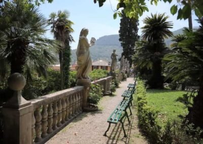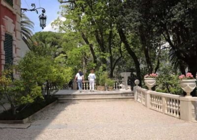 Il Giardino di Villa Durazzo, located along Via San Francesco d’Assisi in Santa Margherita Ligure, is a splendid example of a historic Italian garden that perfectly blends art, nature, and landscape design. Surrounding the elegant 17th-century Villa Durazzo, the gardens extend across terraces overlooking the Gulf of Tigullio, offering visitors stunning panoramic views of the Ligurian coast. The layout combines formal geometric parterres, shaded pathways, and romantic corners enriched with statues, fountains, and Mediterranean vegetation. Majestic palm trees, centuries-old camellias, and colourful flowerbeds create a refined yet natural atmosphere, making it an oasis of peace away from the lively town below. Today, the gardens are open to the public, inviting leisurely walks, cultural events, and moments of quiet contemplation. With their harmony of history, art, and nature, the gardens of Villa Durazzo remain one of the most enchanting places in Santa Margherita Ligure, a timeless retreat for locals and travellers alike.