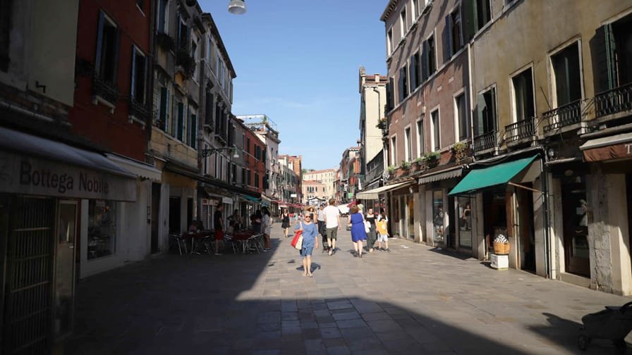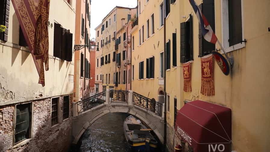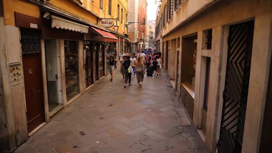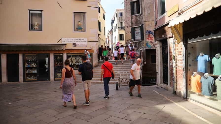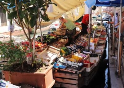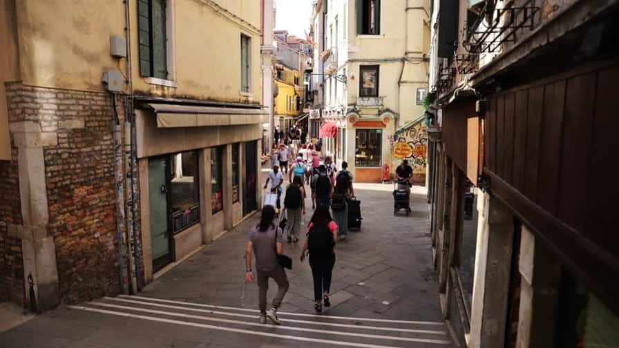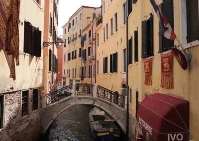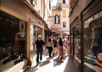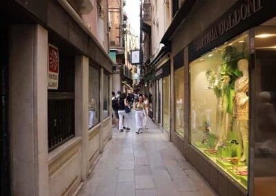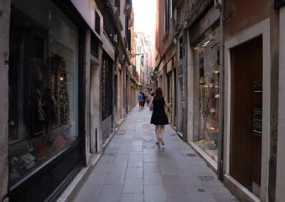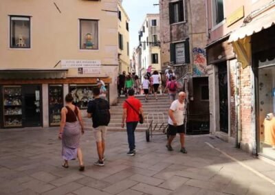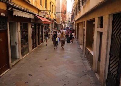 The walk starts in Campo S.S. Apostoli – Fondamenta Trapolin – Calle Dolfin – Ponte dei Zogatoli – Salizada S. Giovanni Grisostomo – Ponte de l’Olio – Sestiere di S. Marco – Campo S. Bortolomio – Salizzada Pio X – Ponte di Rialto – Riva del Ferro – Calle del Carbon – Calle Minelli – Calle Dei Fuseri – Ponte Dei Fuseri – Calle Barcaroli – Calle Frezzaria – Calle Tron – Fondamenta Orseolo