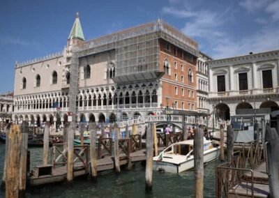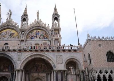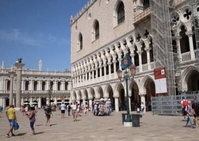 Venice is a treasure trove of architectural wonders, with styles ranging from Gothic to Byzantine, Renaissance to Baroque. The city’s most iconic building, the Basilica di San Marco (St. Mark’s Basilica), stands proudly in Piazza San Marco (St. Mark’s Square). This stunning basilica, with its golden mosaics, domes, and Eastern influences, is a symbol of Venice’s historical ties with Constantinople and the Byzantine Empire. Its interior is just as breath-taking, with vast expanses of intricate mosaics depicting religious scenes, making it one of the most important examples of Italo-Byzantine architecture. Adjacent to the basilica is the Doge’s Palace (Palazzo Ducale), a masterpiece of Venetian Gothic architecture. This grand palace was once the residence of the Doge, the chief magistrate and leader of the Republic of Venice, and it also housed the government institutions of the city. The palace is an opulent reminder of Venice’s former political might and artistic achievements, with its ornate facades, gilded