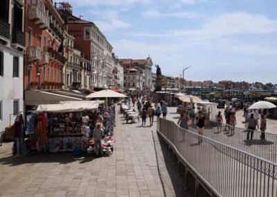 Campo San Geremia is a lively square located in the Cannaregio district of Venice, Italy, just steps from the Grand Canal and near the entrance to the historic Ghetto. The campo takes its name from the Church of San Geremia, a remarkable building that houses the revered relics of Saint Lucy, making it an important site of pilgrimage. Surrounding the square are elegant palazzi, including the Palazzo Labia, known for its frescoes by Giambattista Tiepolo. The area captures a fascinating mix of Venetian life—locals, pilgrims, and visitors all passing through its open space framed by canals and bridges. Campo San Geremia also serves as a gateway to Venice’s northern districts and a vibrant link between the Santa Lucia railway station and the heart of the city. Its atmosphere blends history, devotion, and everyday Venetian charm, offering a perfect glimpse of the city’s enduring character.