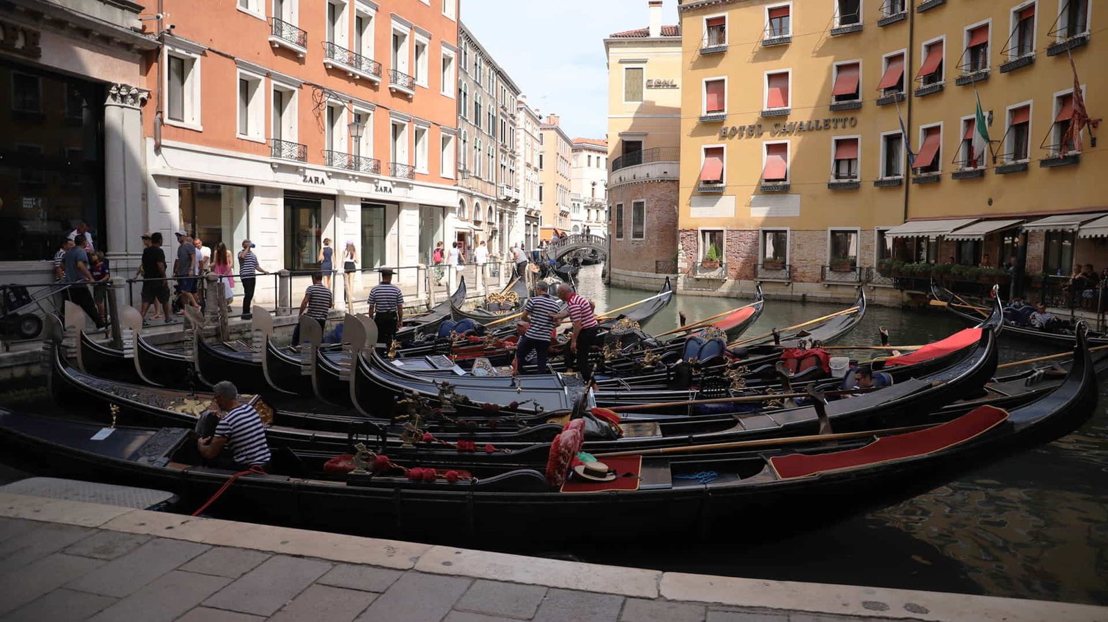 Fondamenta Orseolo is a small yet iconic canal-side promenade in the heart of Venice, just steps away from the grandeur of Piazza San Marco. Despite its modest size, this narrow fondamenta offers one of the most recognizable scenes in the city: a quiet canal lined with gondolas gently moored in a row, their black hulls reflecting in the water beneath surrounding historic facades. It is here that many visitors encounter the intimate scale and poetic atmosphere that define Venice.